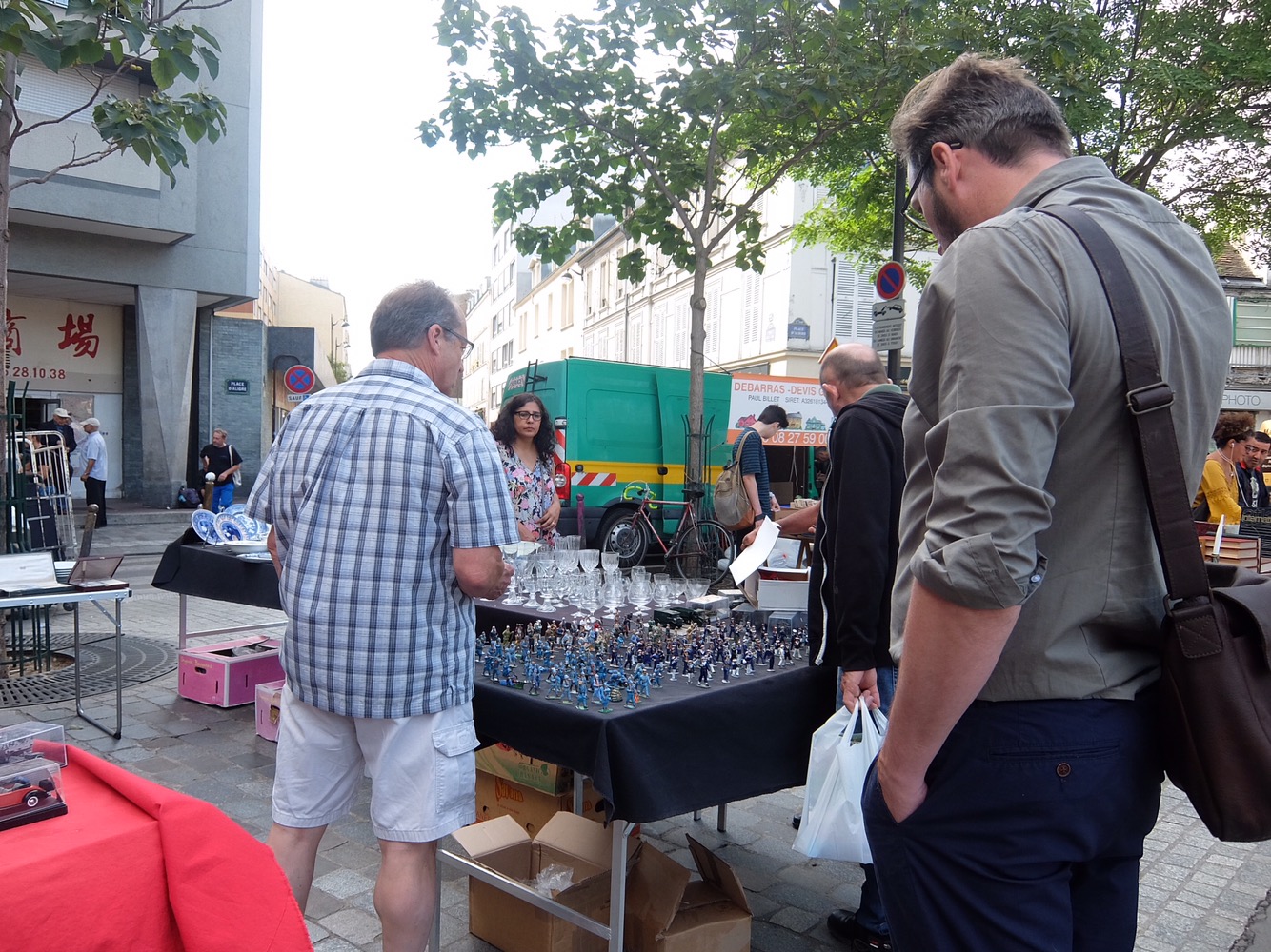 This market was smaller but there were tables and tables of goods to browse. Rick stopped at the table filled with small figurines of french military soldiers in varying poses. We had just visited the Armee Museum showcasing French military over the years and highlighted Napoleon’s years. Inside the museum was one room dedicated to toy army figures which is how battles were configured and strategized before computers.