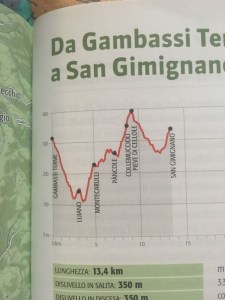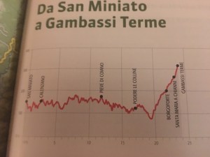 We spent too many hours on the road and by the time we could see the town of Gambassi Terme which sat beautifully upon a hill, I knew it would be after sundown before arrival. Suzanne had low blood sugar and we stopped to get that in a better spot, it was hot (mid-80’s) and our packs felt heavy.