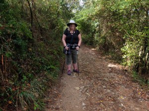 Before we even put our packs on, the rain and thunder began. Oh boy! We get to walk in the rain. Out come the ponchos – for me anyway. I kinda like wearing one.