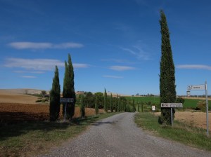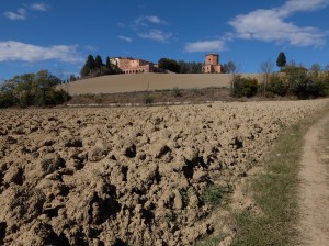 Today was nice, a few steep hills but more flat than ever before. We filled water bottles and bladders in Quinciano and trekked through last the fields of giant dirt clods. I think the fields may have once been home to sunflowers because there was a lone one still standing, but I’m not sure.