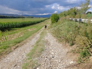 We made it into Acquapedente after being misdirected to a horrible section of trail. It made no sense and Suzanne was not having any of it. She was the smart one… whoever placed the Via Francigena sign there should be severely punished!