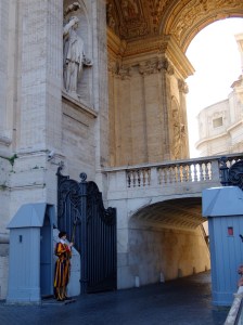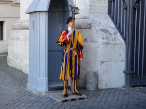 On the way out we both snapped a photo of a swiss guard. There were two different uniforms that we saw. This one is the most colorful!