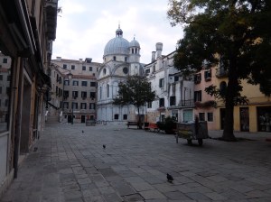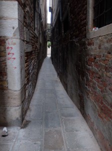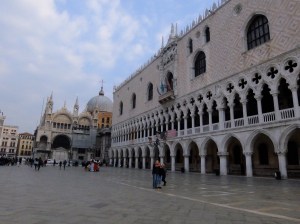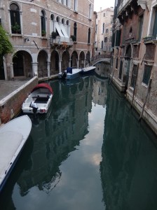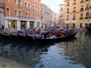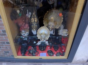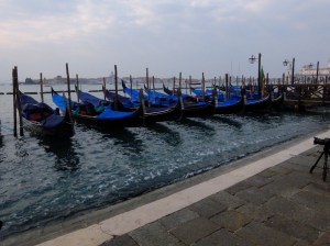 I continued on my morning walk through the streets and alleys and found gondolas being parked and cleaned, more artfully displayed windows and finally San Marco Square.