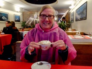 We were so cold after a few hours of rain that we were searching for warm clothes to buy. I found a sweater, jacket and jeans and socks at two different stores and by dinner I managed to warm up. Suzanne searched in vain for something else to wear and had to be ok with what she had. Basically once we got out of our wet shoes and rain ponchos we felt better.