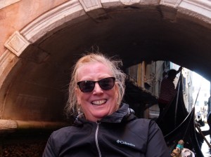Last part of the tour was the gondola ride. Suzanne smiled the entire time! First of course we learned how gondolas were made. They are off center so the gondolier can stand. They take 6 months to hand build and cost at least 30,000 euros. The more bling added the cost could go as high as 50,009 euro. They are owned by the gondolier or perhaps the family. That is why the rides are expensive. The boats last on average 15 years up to 50 years. By then the new models are so much easier to maneuver it would be a collector piece.