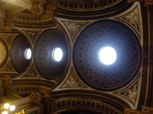 We stood in the short que to get inside the church. It was very pretty and large. I’m not sure who painted the ceiling but it had blues and gold and sparkled.