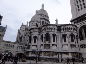 As we continued to climb the hill, we came around the back of the Sacre Couer Church. It was the last church funded by the French government. An innocent guard was shot and killed in error by the French military on the site and to make amends the church was built.