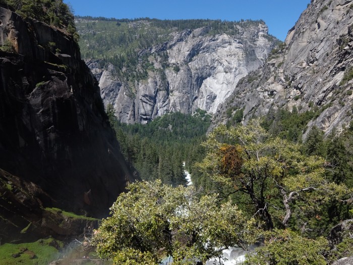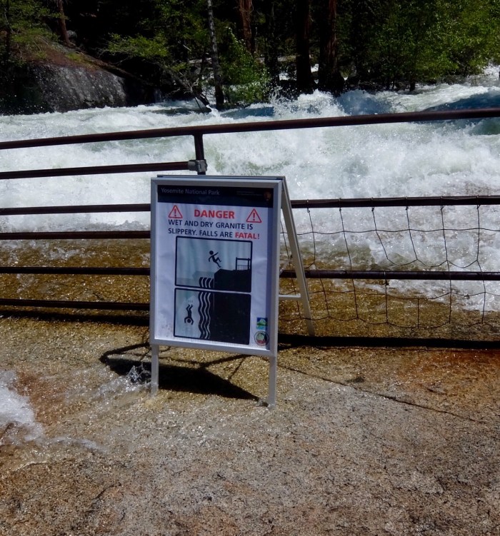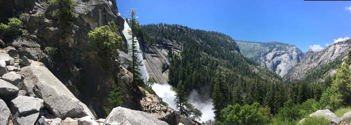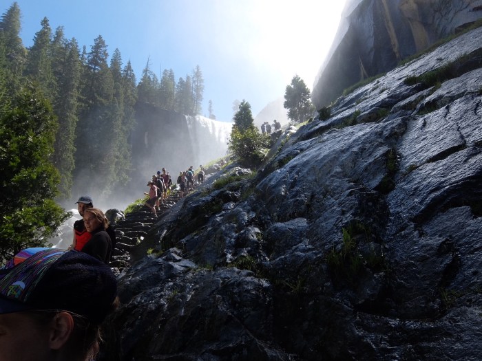 Before arriving at the Upper falls, we walked up the very long, steep Mist Trail. Mist isn’t the word I would use to describe the amount of water falling on us. It felt more like a downpour with wind included. We were all soaked, down to our underwear. It felt great to be done with that section of trail!