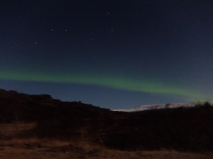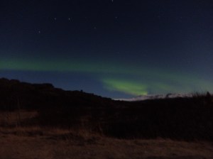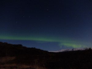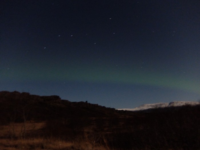 We saw them! The sky was clear, the moon was nearly full but we could see the Big Dipper hovering over the mountains in Þingvellir National Park.