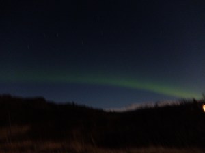 Back outside the wait was on. About 45 minutes of waiting, I took one photo that had the green suggestion across the sky. I think we have the lights tonight!