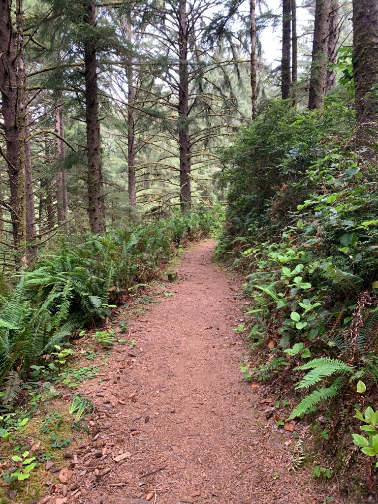 We headed north on Hwy 101 towards Samuel H Boardman Scenic Area and found the trail we wanted. A 1-mile loop at Thomas Creek Whaleshead Beach Trail, connecting a short distance on Hwy 101, and back Into the forested trail towards Indian Sands.