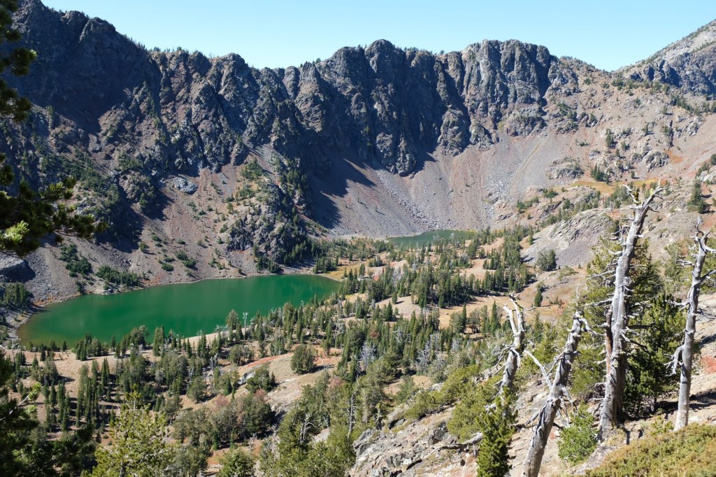 The day is clear and blue skies are abundant. The scenery is amazing. Mountains in the distance, trees and uninhabited land as far as you can see. We hike our way up the mountain trail stopping to catch our breath occasionally, and finally we are at the Twin Lakes trailhead. We decided before the trip to skip this lake and find a camp spot further along the trail. Another trip to the Twins might be in the future… We spotted several mountain goats near the lakes. Grazing in the meadows near the lakes. Amazing animals!