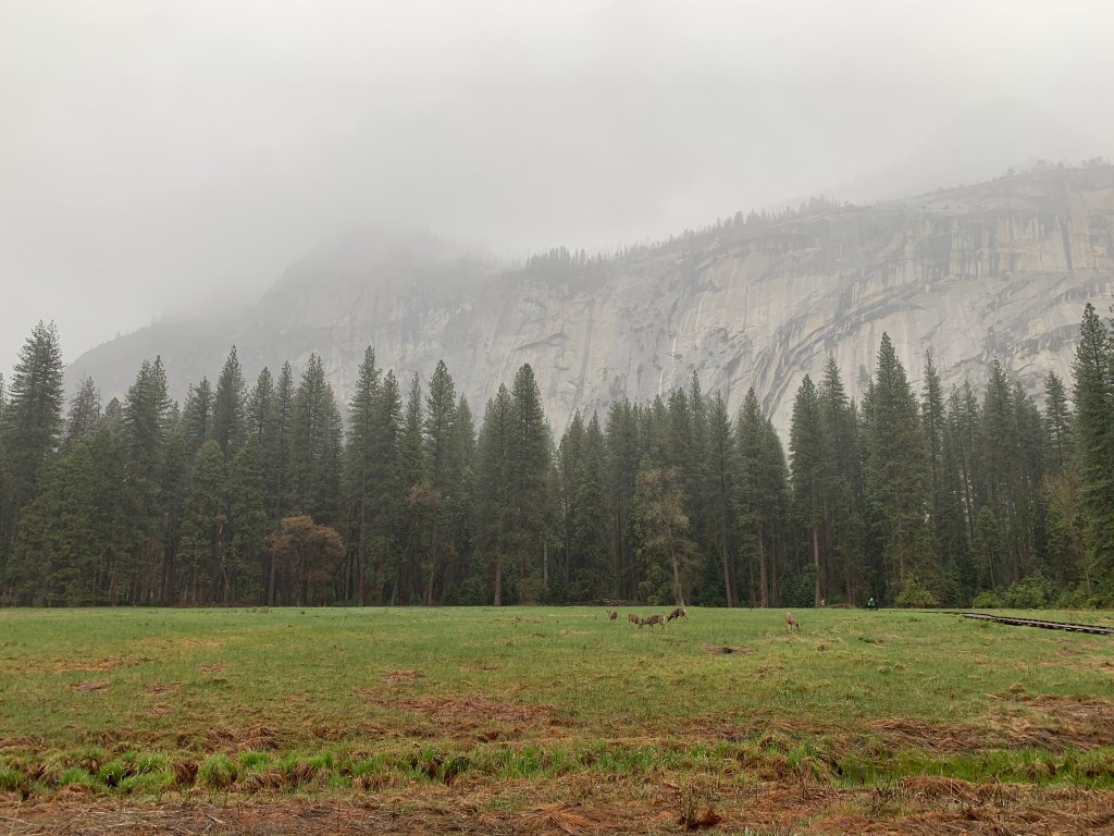 Once in the Yosemite Valley we meandered along the road trying to see the big mountains and waterfalls, despite the low clouds and rain. We knew that the next day would have better weather. That proved to be true.