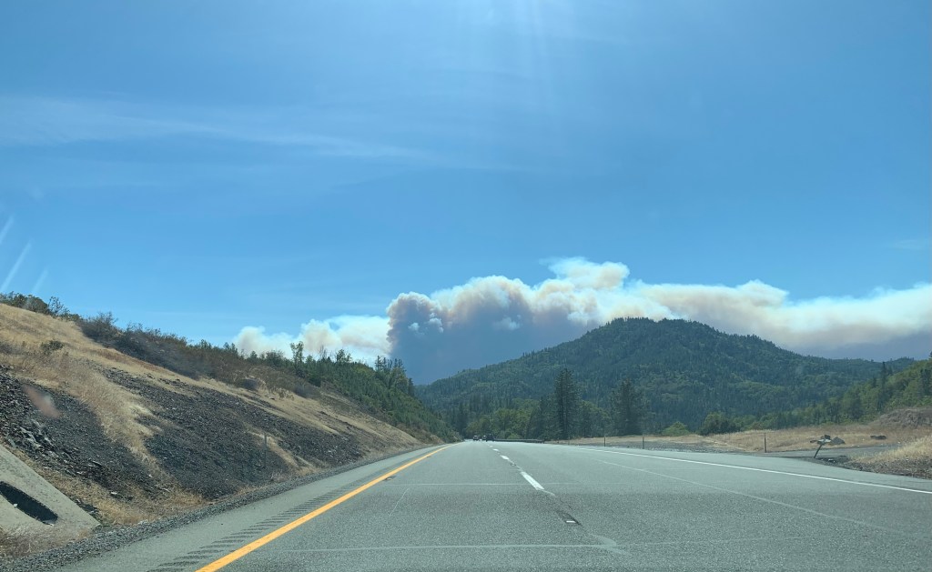 Driving from Portland to Benicia, over halfway there, Mt Shasta was visible. Just beyond the mountain I noticed low clouds on the other side of the hills. It didn’t take long before I realized that was a wildfire…