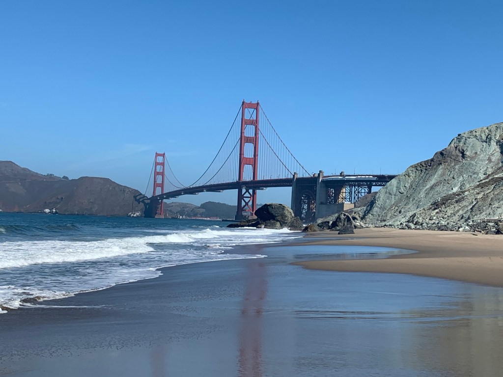 The beach was amazing. The view of the Golden Gate Bridge above the beach is iconic.