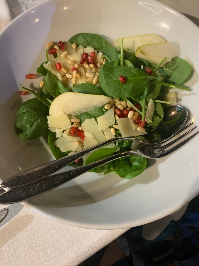 Dinner was a table in Piazza del Campo where we shared 2 pasta dishes, a calzone and a nice spinach salad with pine nut, pomegranate seeds, pears and Granada Parma. Delish. I like that the assumption is olive oil and balsamic is enough for the dressing. It’s good for me anyway!
