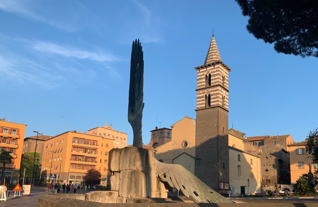 We started in Viterbo where we currently were, but hadn’t had a chance to finish seeing everything. Every square has a fountain. One in particular we wondered about was the Broken Wings monument which we were told was created to honor the fallen soldiers of WW2. We have noticed so many plaques or statues to the fallen war heroes throughout Italy.