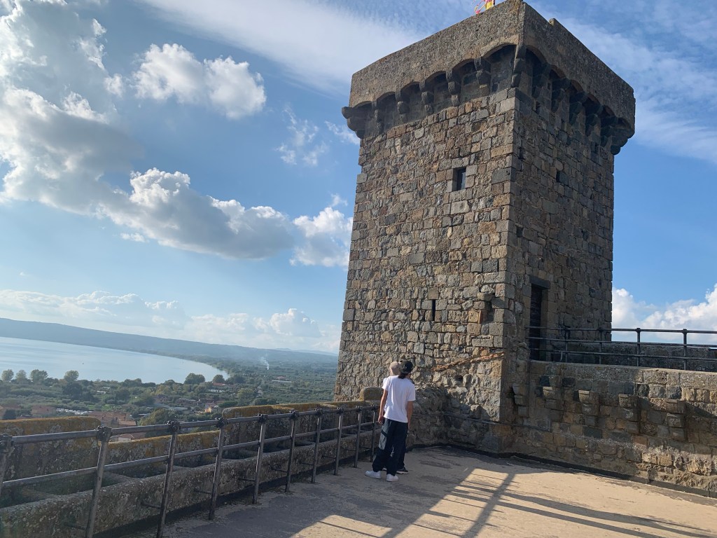 Finally we stopped in Bolseno, a town we stayed in 2 nights ago. After walking all day there is only so much energy a person has remaining so we did not stop to see the tower – but we did today! Great views from the top of the tower looking out over Lake Bolseno.