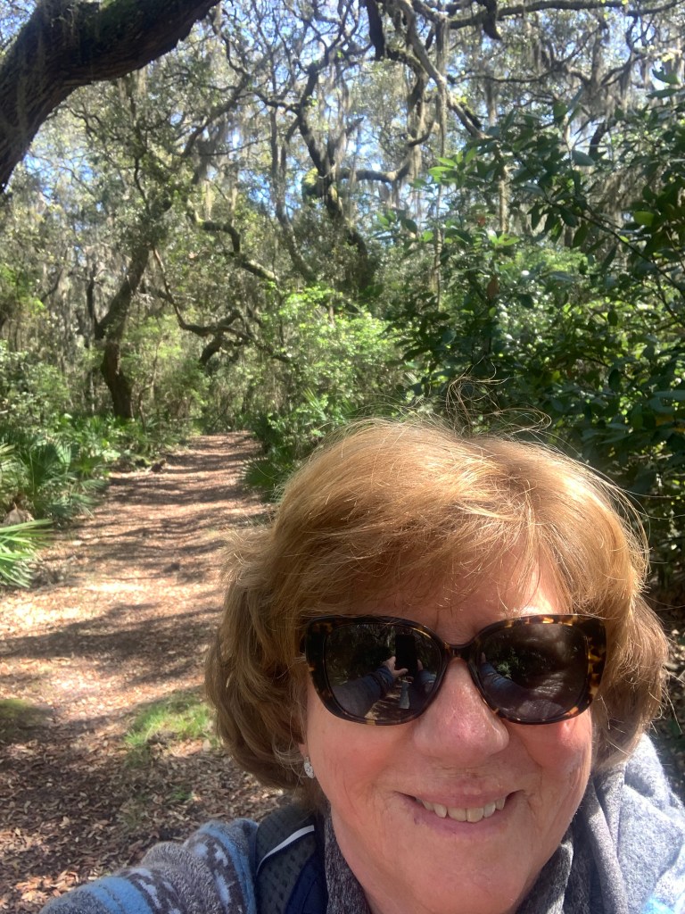 We had a bit of a break as Rick wasn’t feeling well, but finally Sunday we were able to drive north 2 hours and took the ferry from St. Mary’s Georgia to Cumberland Island. What a treat that was! Salt marshes, wild horses, turtles and large old oak trees. We watched a pelican land on a deck, waddle to the edge and finally fly into the marshy area.