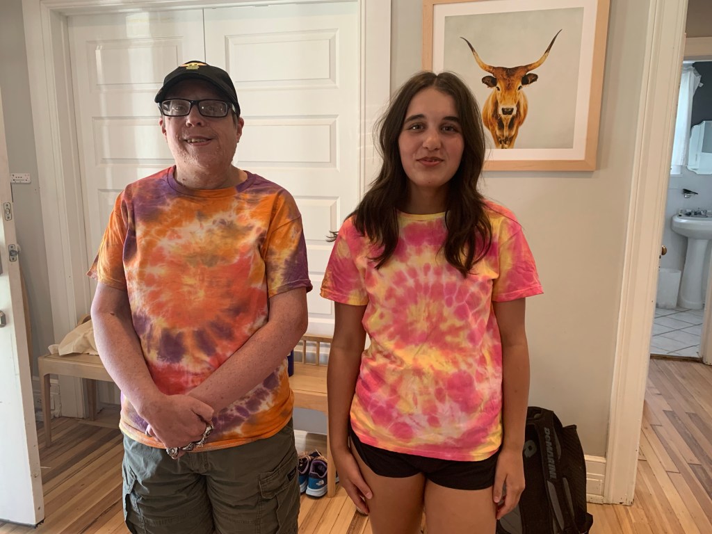 I love visiting with my kids and grandkids. The grandkids sure grow up quickly! Uma had a project at school and she helped TJ create his own tie- dye t-shirt. They both wore them a couple days later and looked good!