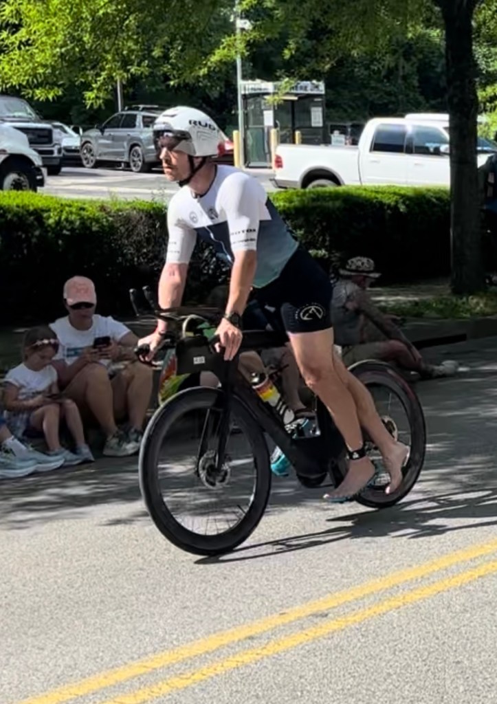 A half-Ironman impresses the heck out of me! Brian trains most of the year while holding down a more than full-time job. He finished this race in just seconds over 5 hours. That is a 1.4 mile swim, 56-mile bike and 13.1 mile run. Whew! My morning consisted of walking to the bakery for a coffee and croissant, searching for Brian’s swim finish (missed him), the bike and run and taking photos. It was exhausting!