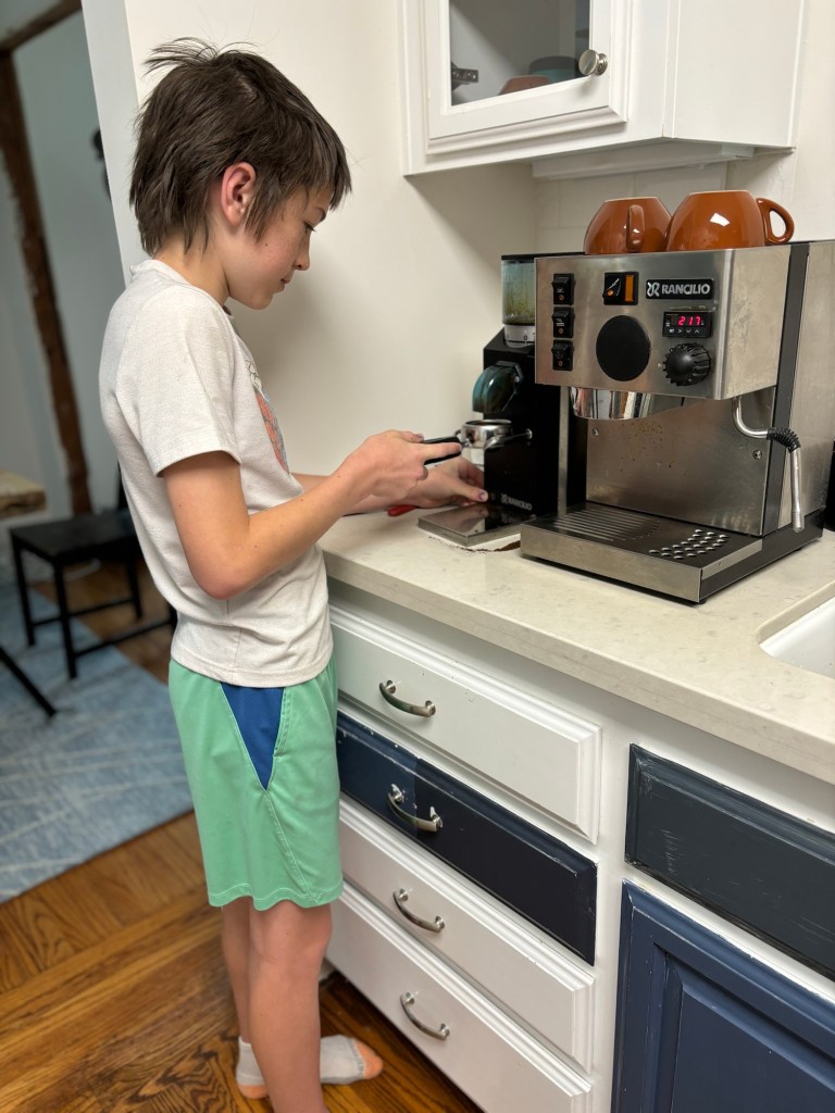 Alden made cappuccinos for me most mornings unless I got up too early for him. He’s got a job waiting for him if he wants…