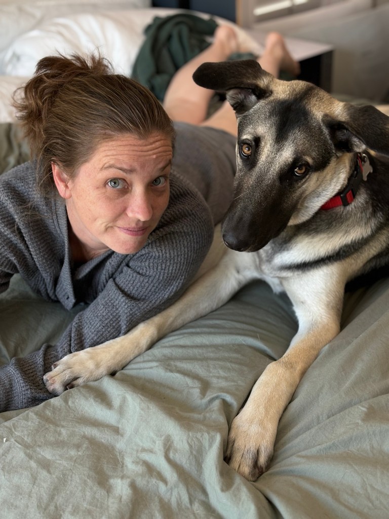 Stef came home a day before I was scheduled to fly home. Biscuit was a happy puppy!