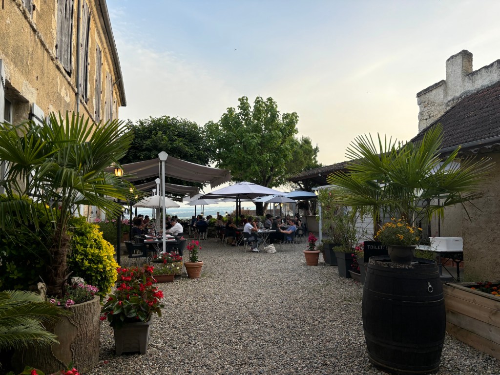 Trains are the best. They are generally clean and on time but the bus system is more challenging. We got off the train in Agen and understood the bus station was just outside the station. The buses aren’t marked well for a tourist but many drivers are kind and helpful. We eventually found our bus but nearly missed it. It’s a very good thing there were 50+ travelers waiting in line to get on that bus. It gave us time to walk quickly to the very first bus only to be told it was back where we had just come from – the very last bus. Oh well we made it and will end our day of travel in 58 minutes. Can’t wait!