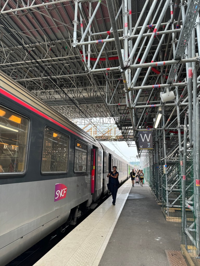 The train was waiting for us which was a treat. Since it’s going all the way to Paris (we only had 4 stops and then switched trains), the lines were long but we had reserved seats so no problem. The same was true of our next train.