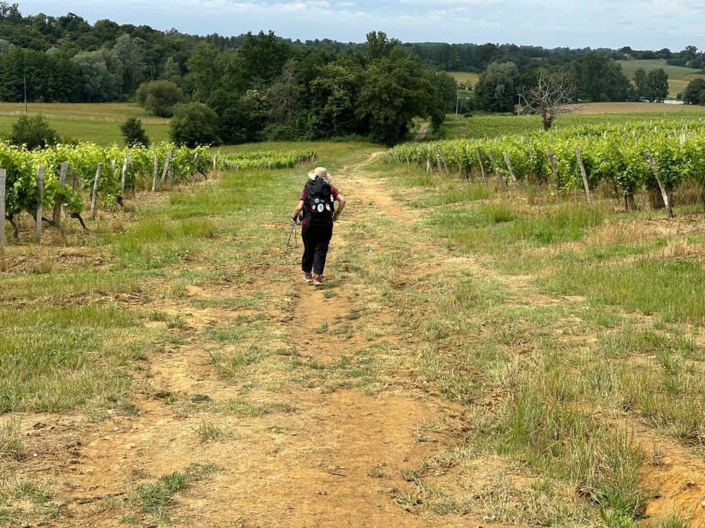Today’s walk was beautiful. We enjoyed vineyards, forests, farmlands and one town. Other than the 30-minute rain storm (wind and rain), the weather was short sleeve pleasant. I’ll take that any day!