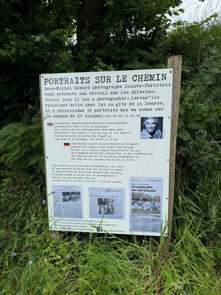 We turned a corner as we approached the town of Nogaro and found these beautiful portraits of pilgrims taken by the photographer, Jean-Michel Denard. As we walked past them one in particular stood out. The young man in the photo looks so much like my son-in-law it’s crazy! Nathan even agrees as I sent him the photo. I wish I could find out who he is.
