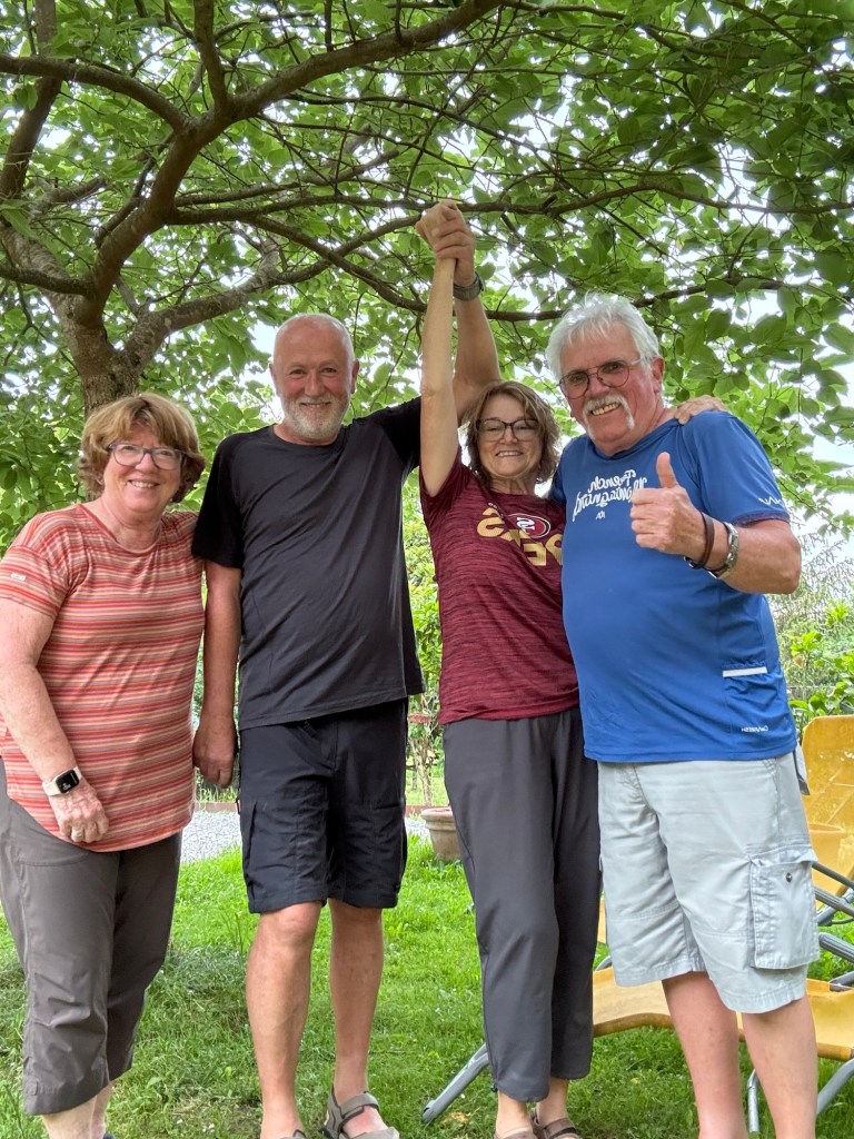 Tracie’s team won and we both think I got most of the points for my team and Tracie for her team. It’s a great backyard game! I also think Pierre just wanted to hold Tracie’s hand in victory! Haha!!😆
