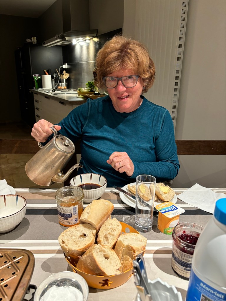 Our 6:30 breakfast was pretty basic. Bread and coffee/tea with jam and butter of course. It’s enough to get us on the trail and hope we find something open!