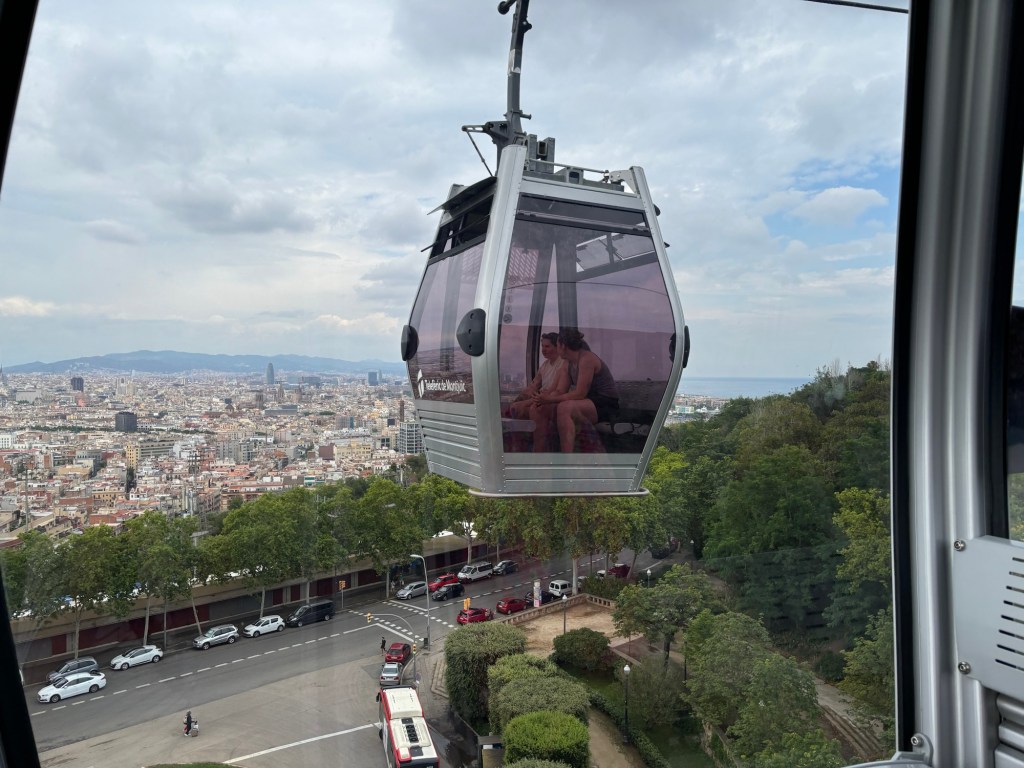 After we had our fill of a walk and view of Barcelona we headed back to the cable cars for the ride down. You could get off at the mid-point but we chose not to. The city spread out below us – magnificent!