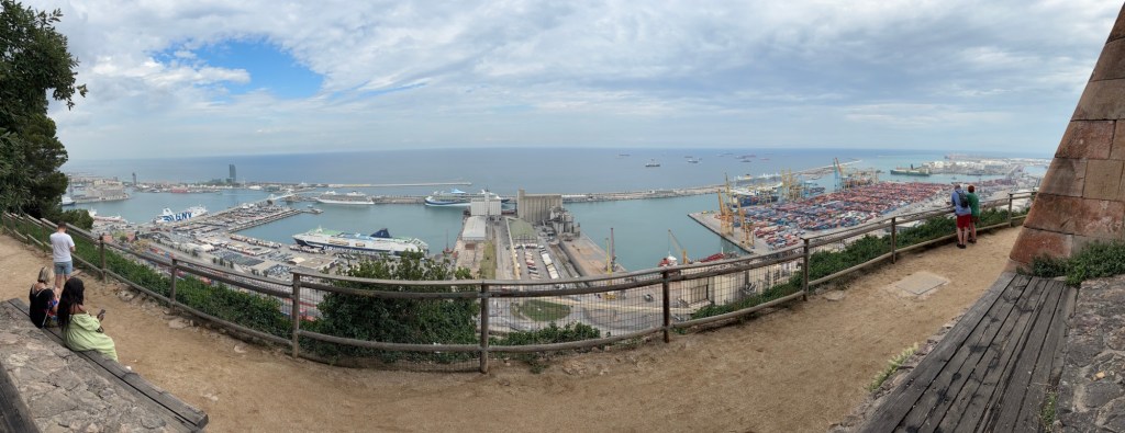 At the top is a castle which we did not tour as we were limited on time. However the views strong the outside walls were amazing. The port of Barcelona was filled with cruise ships and freight containers among other smaller things.