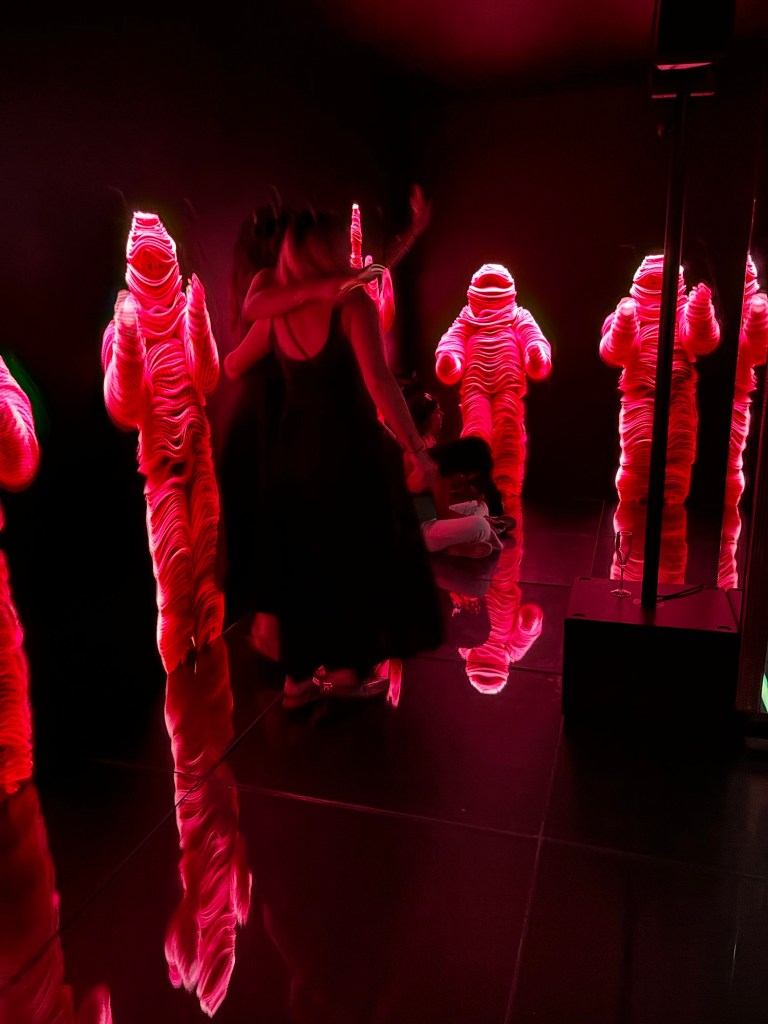 4) while we wait we are shown a screen warning us that if we have epilepsy, dizziness, dim eyesight, vertigo and maybe more, we should not go in. Ok this is not sounding promising. It was a light and music show and that was it. Tracie and I went disco dancing in Gaudi’s basement!