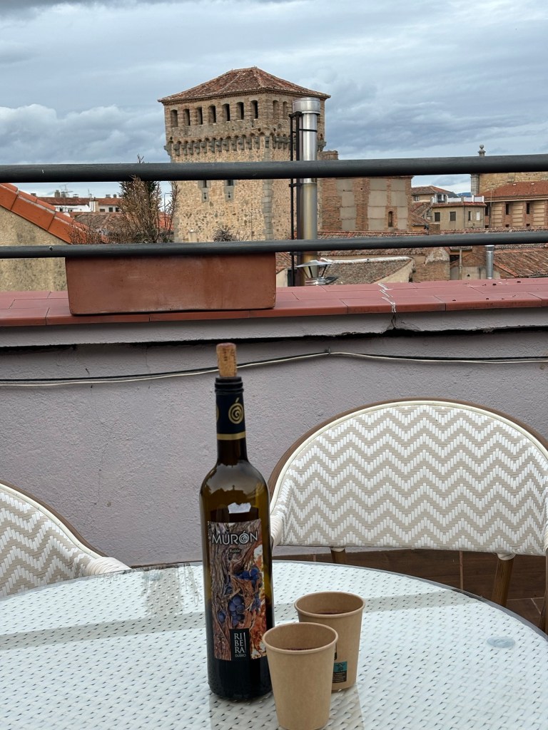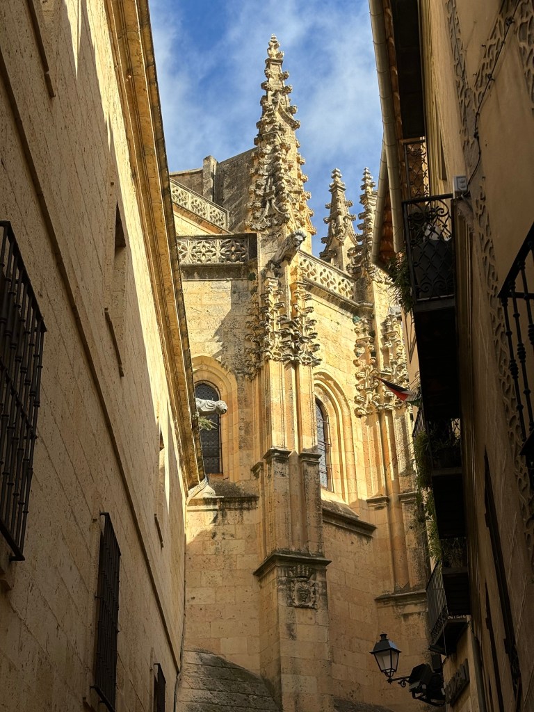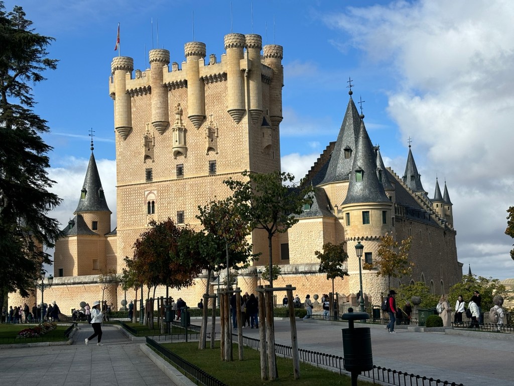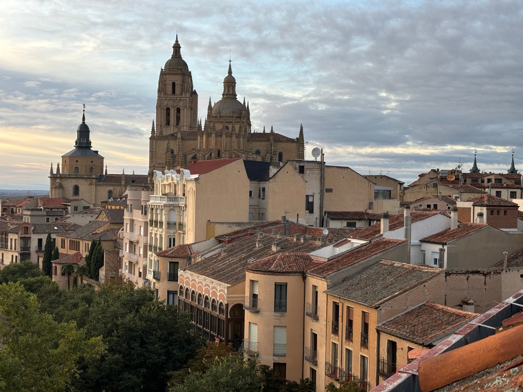 We arrived in Segovia after 3.5 hours passing through some beautiful countryside. Grabbed a taxi waiting in line and arrived at our hotel 15 minutes later. Most of the old center is pedestrians only so there are a limited number of streets cars can drive. It makes walking around easier however you still have to watch out for those people that stop right in front of you to look at their phones…