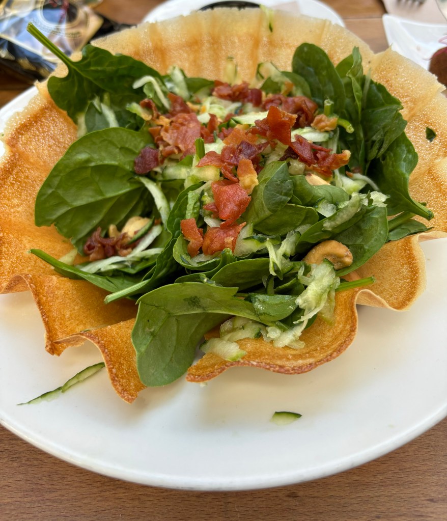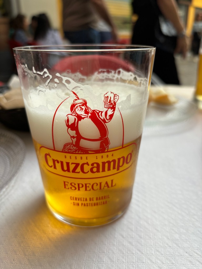 Nao Victoria, a replica of the only returning ship on Magellan’s around the world expedition. 80 sailors sailed on this ship and 3 years later it returned with only 18. In addition the 4 other ships sunk or were unable to continue so found new islands to liveHad to share this delicious mushroom croquette. Yum!Oxtail stew on a plate…Salad bowl with spinach, tomatoes and bacon in a crepe bowl. I loved it!Last but not least a flamenco dancer in the street while we ate. How fun is that?!