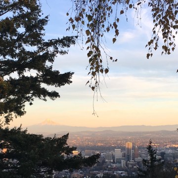 Beautiful snowy Mt. Hood from Pittock Mansion